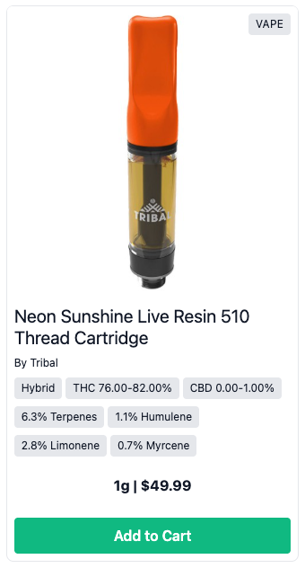 Buddi allows retailers to display terpene information directly on product listings in the front‑end menu. This includes: